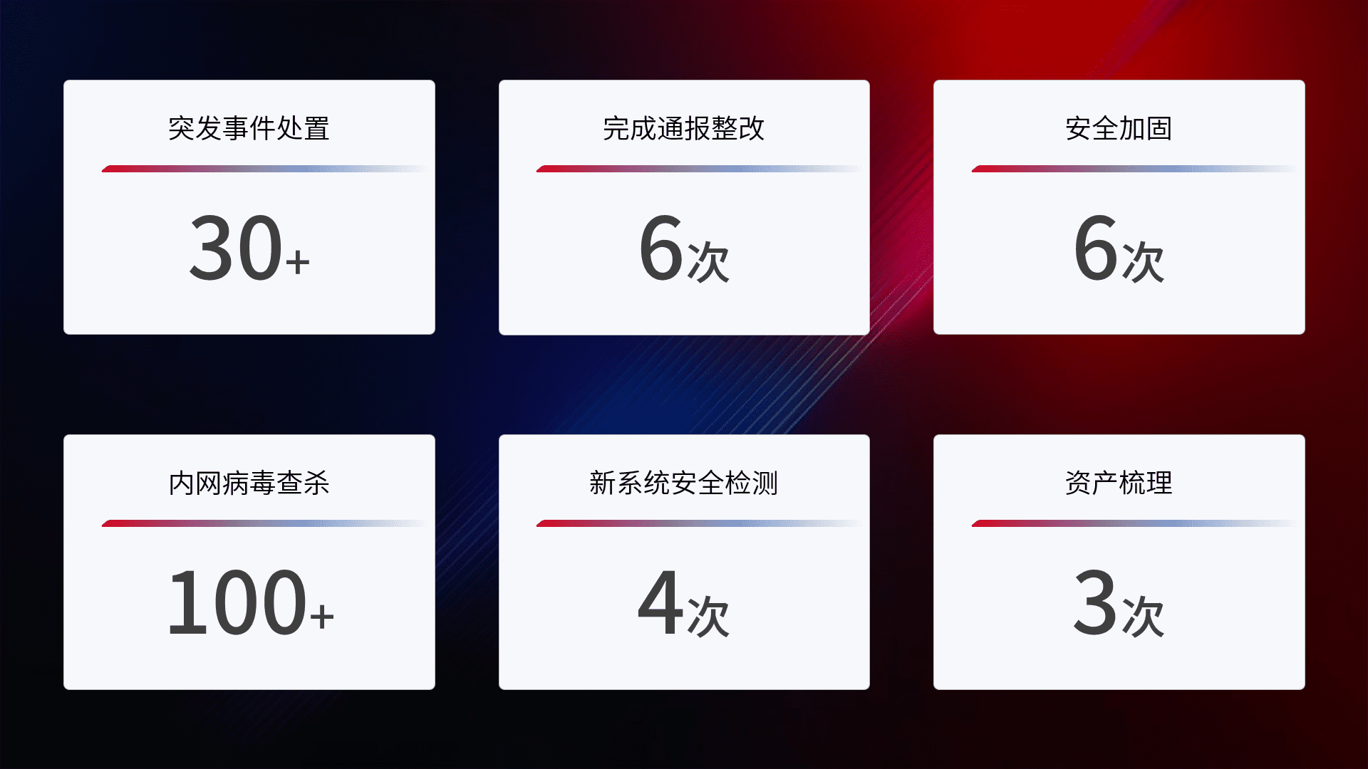 安全水平提升与事件响应:派驻经验丰富的安全工程师,,,提升医院网络安全防护的整体水平;建立突发网络安全事件的处置流程,,,,提高响应速度和处置能力。。